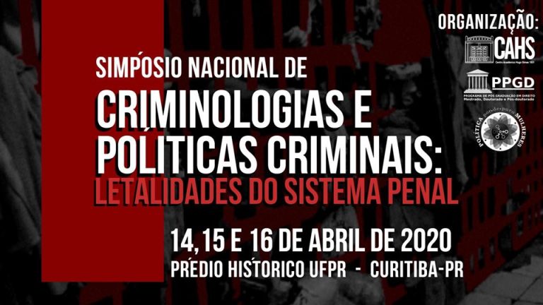 O Centro Acadêmico Hugo Simas e o Núcleo de Criminologia e Políticas Criminais (NCPC) do Programa de Pós Graduação em Direito da UFPR abrem a oportunidade para que estudantes, pesquisadora(o)s, professora(e)s e profissionais de todas as áreas do conhecimento participem do Simpósio Nacional de Criminologias e Políticas Criminais: Letalidades do sistema penal.